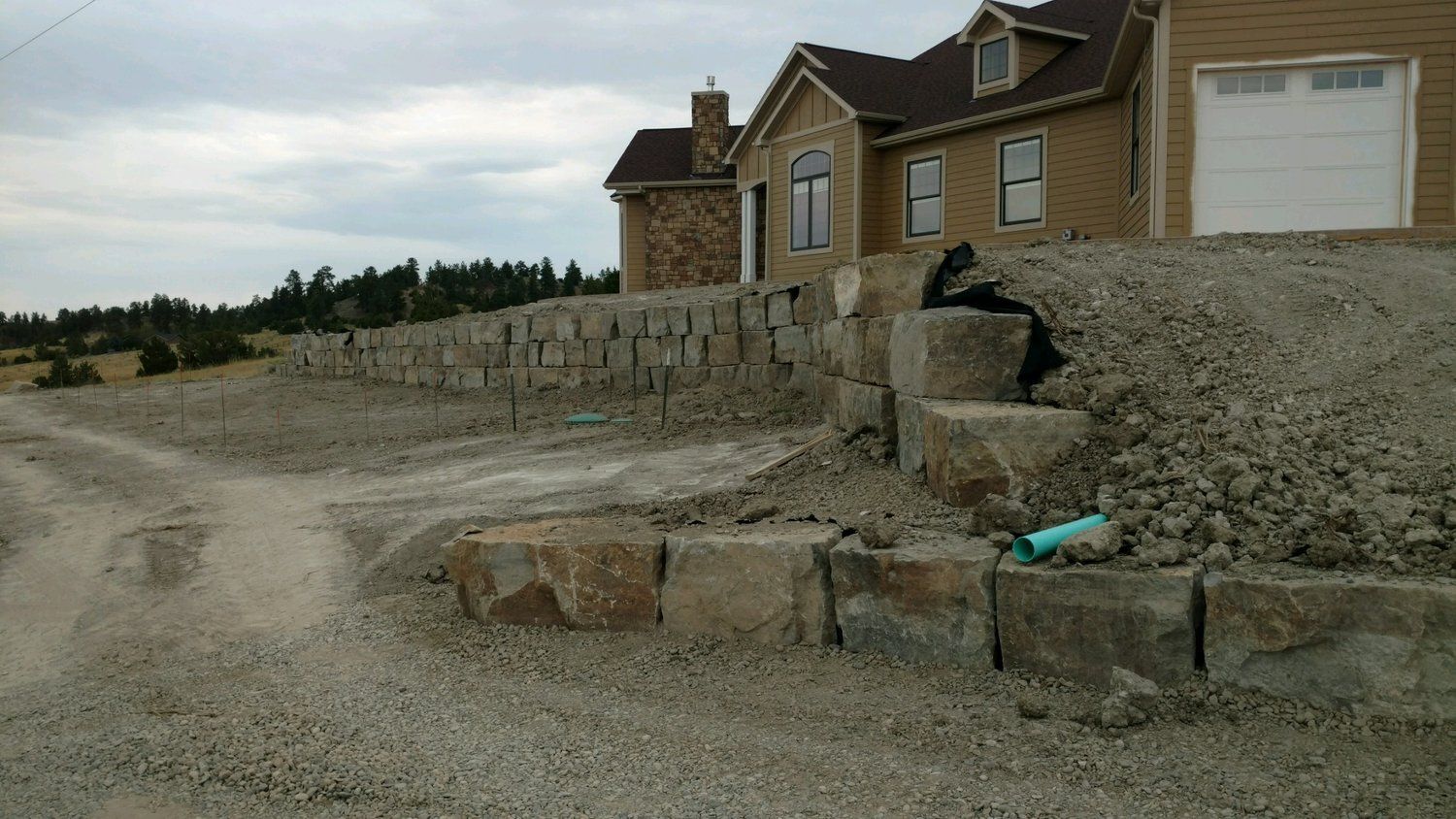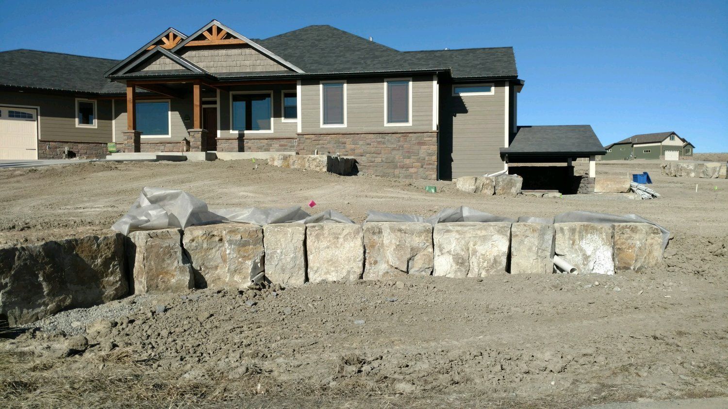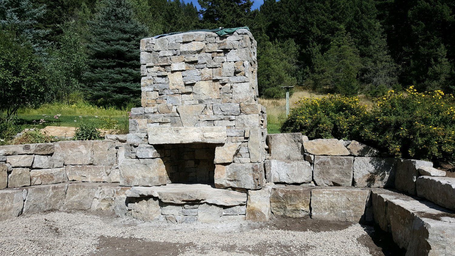 22" Block Rock with veneer rock plastered onto a custom built chimney/fireplace